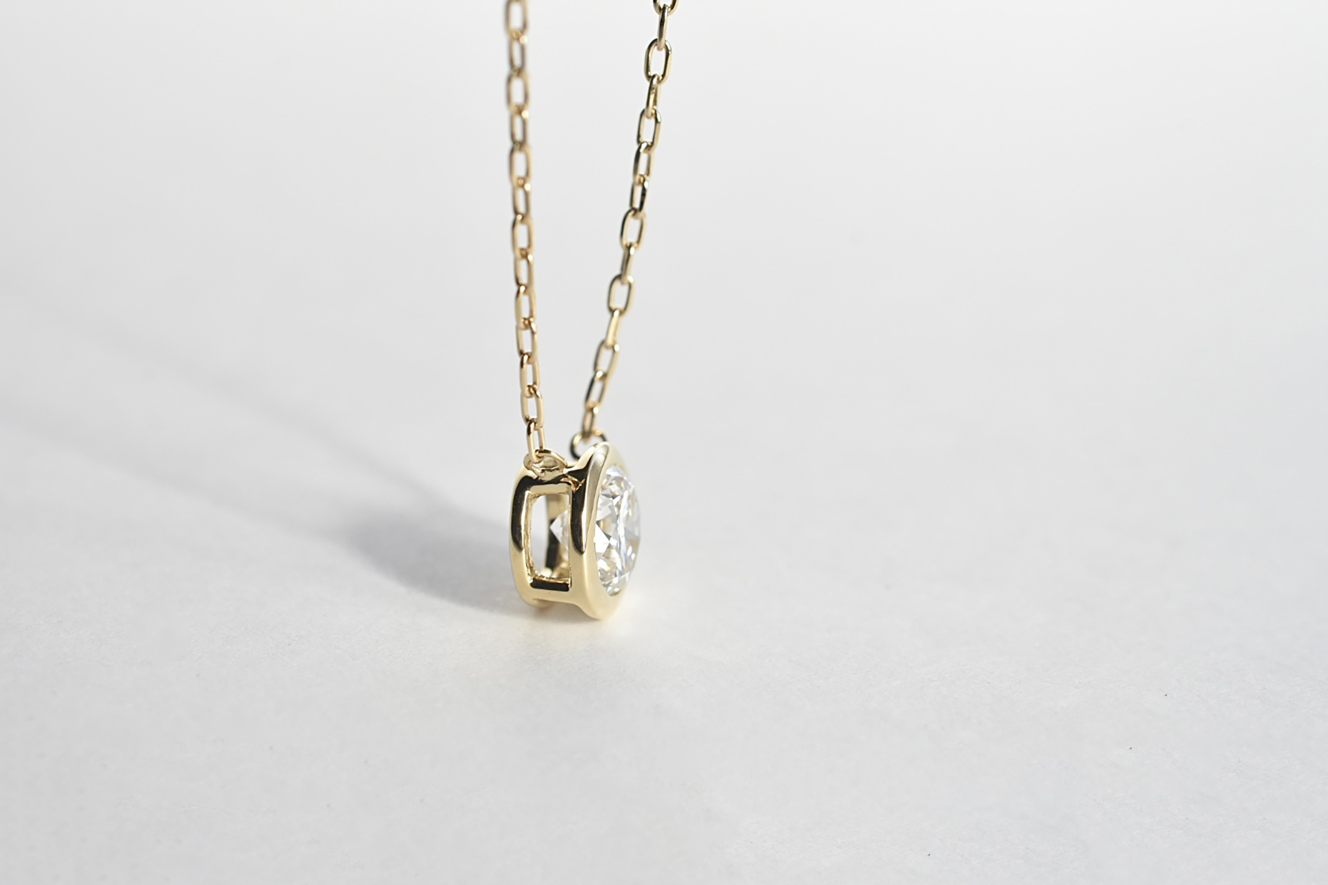 ベゼルセッティング(ふくりん留め)の流行に左右されない普遍的なデザインなのですが側面デザインの細かな違いで使い方や印象が変わります。