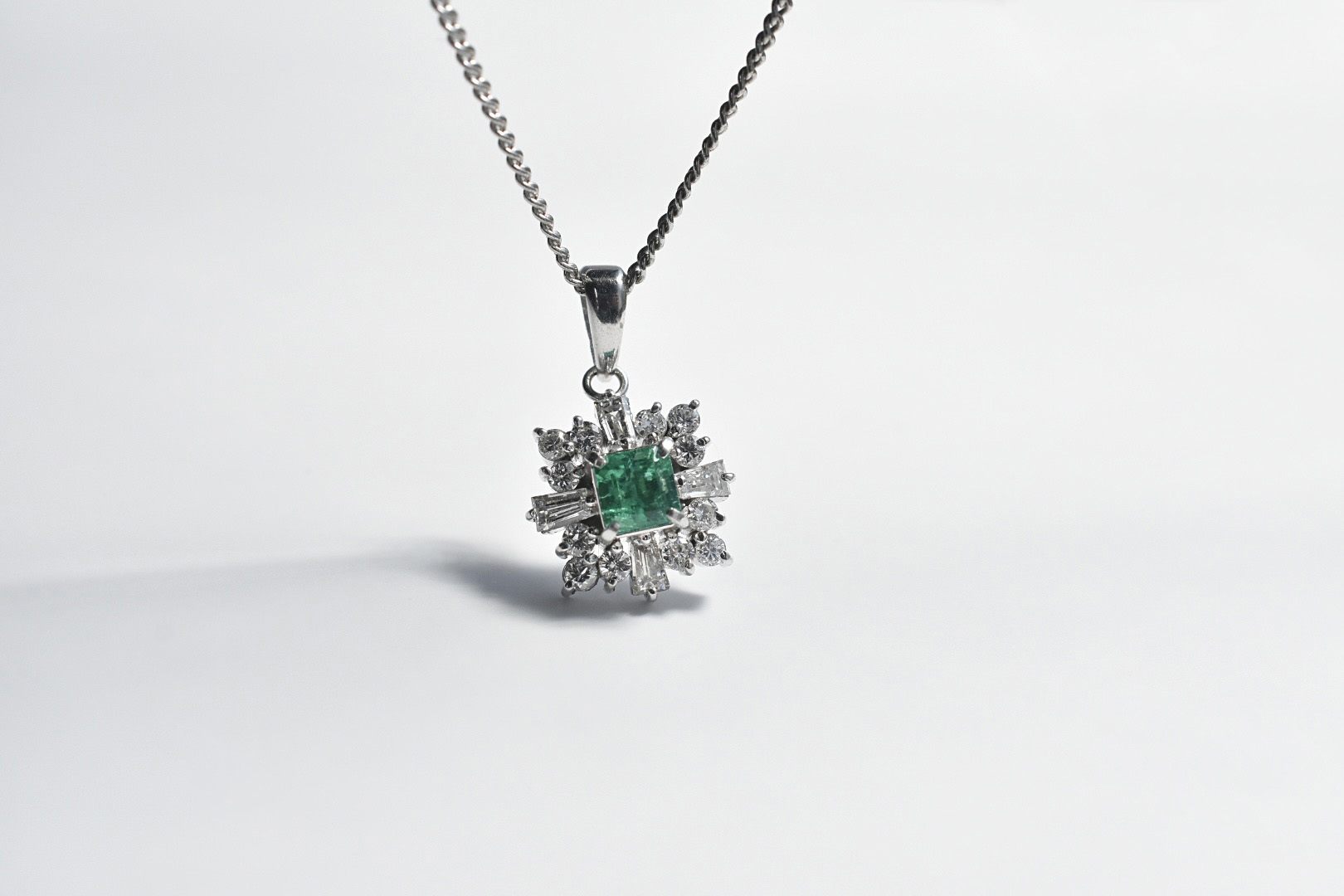 雪の結晶のような雰囲気で素敵なジュエリーです。ご依頼主はネックレスよりもリングがお好みということでこちらのエメラルドとダイヤモンドを使用してリングを制作していきます。